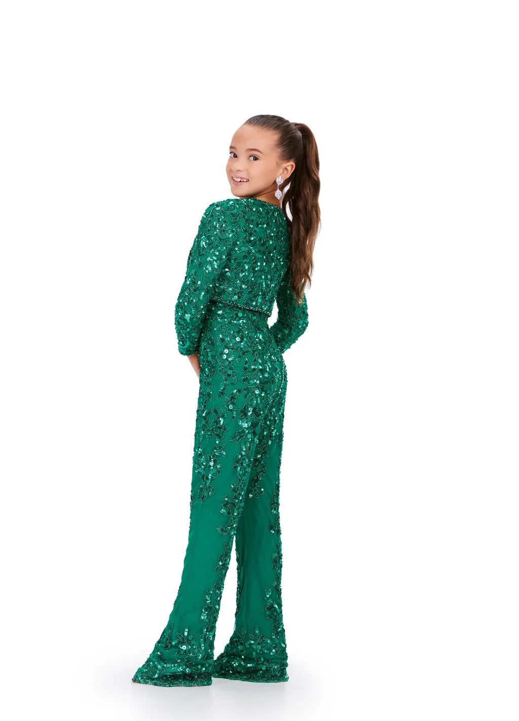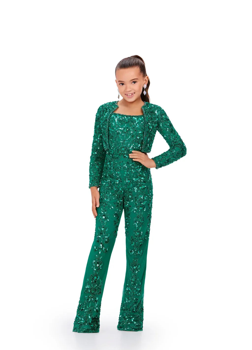 Strike a pose in this fully beaded two piece jumpsuit. This spaghetti strap set is paired with the perfect jacket!